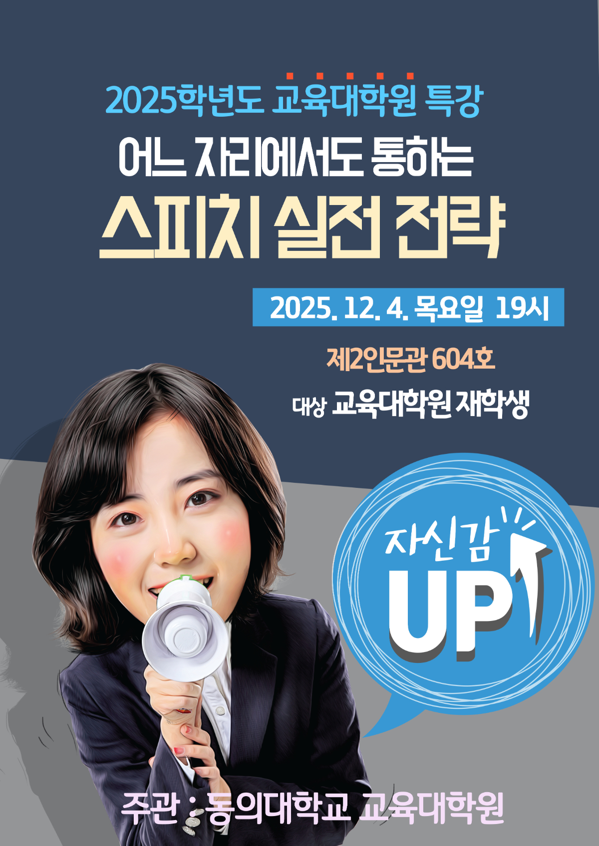 교육대학원에서는 2025학년도 2학기 재학생 특강을 개최하오니, 대학원생들은 참석하여 주시기 바랍니다.
